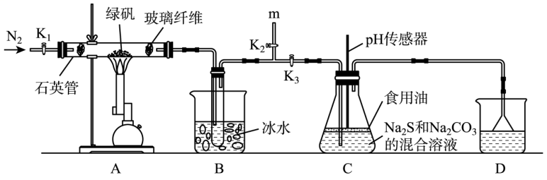 【例】(2022·安徽芜湖·三模)硫代硫酸钠(Na2S2O3)可用作分析试剂及还原剂,受热、遇酸易分解。某学习小组用如图装置模拟古法制硫酸,同时利用生成的SO2气体制备硫代硫酸钠。