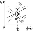 解析: (1)升高温度体系颜色加深,说明NO2浓度增大,即平衡逆向移动,逆反应吸热,则正反应为放热反应,ΔH<0。化学反应速率和温度成正比,随着温度降低,1/T增大,正逆反应速率减小,则lgk正和lgk逆均减小,即应为③、④两条斜线;由于温度降低平衡正向移动,v正>v逆,则降低相同温度时lg k逆减小更快,故④表示lgk逆随1/T变化关系的斜线,③表示lgk正随1/T变化关系的斜线。