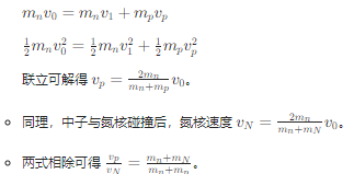中子与氢核、氮核的碰撞可视为弹性碰撞,满足动量守恒和动能守恒: