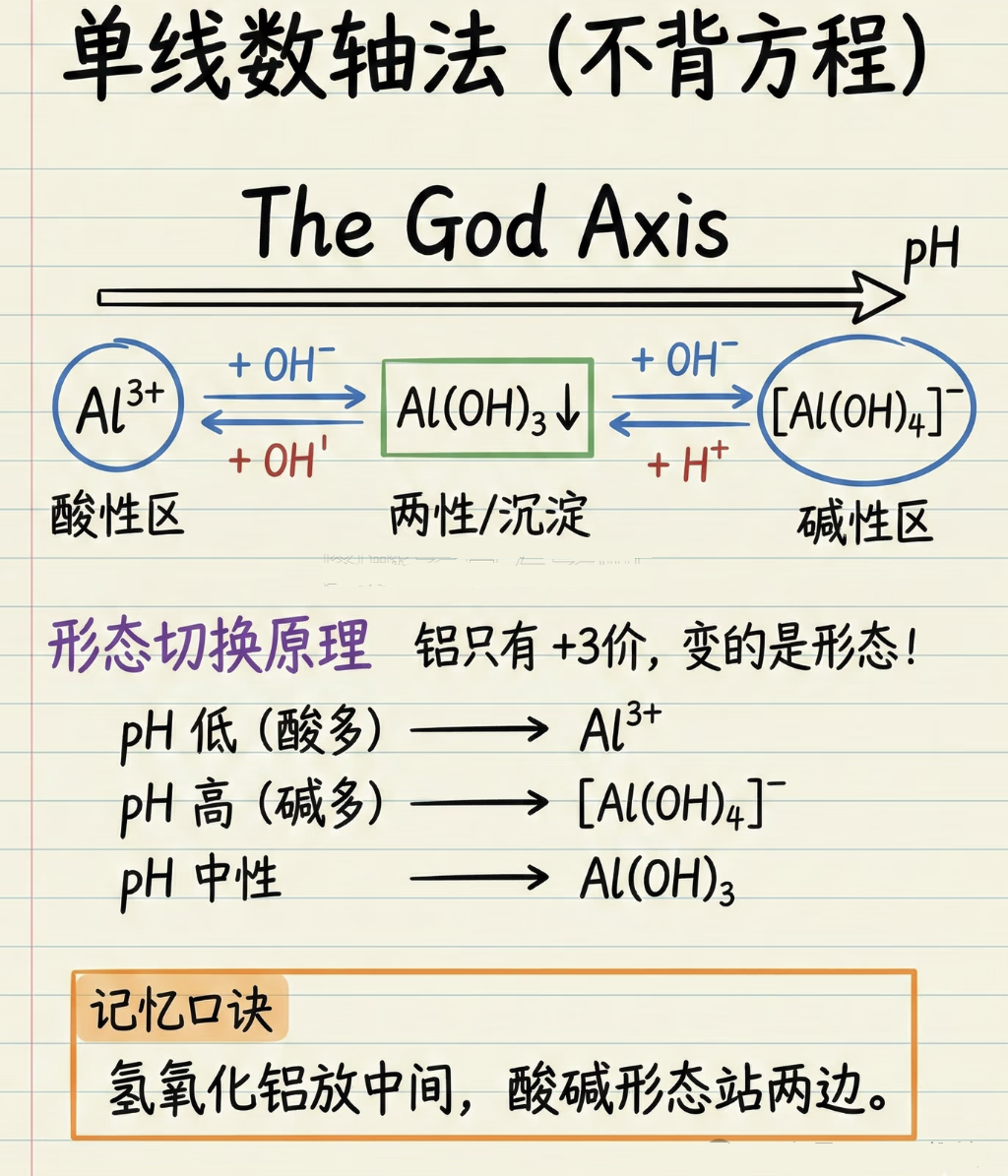 一、建立轴线:形态随pH切换 中间: Al(OH) 3 (沉淀态) 左侧(强酸...