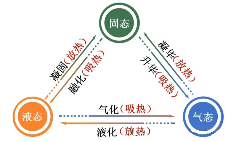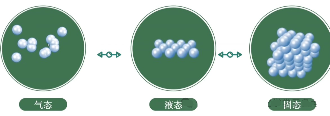 20世纪前,人们认为物质的聚集状态分为三种:固体、液态、气体;同一物质在不同聚集状态下,微粒间的距离不同(如下图所示):