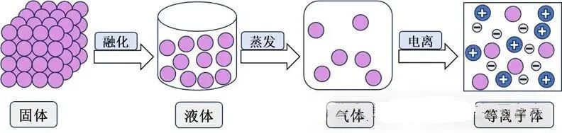 (1)定义:气态物质在高温或者外加电场激发下,分子发生分解,产生电子和阳离子等。这种由电子、阳离子、和电中性粒子组成的整体上呈电中性的物质聚集体称为等离子体。