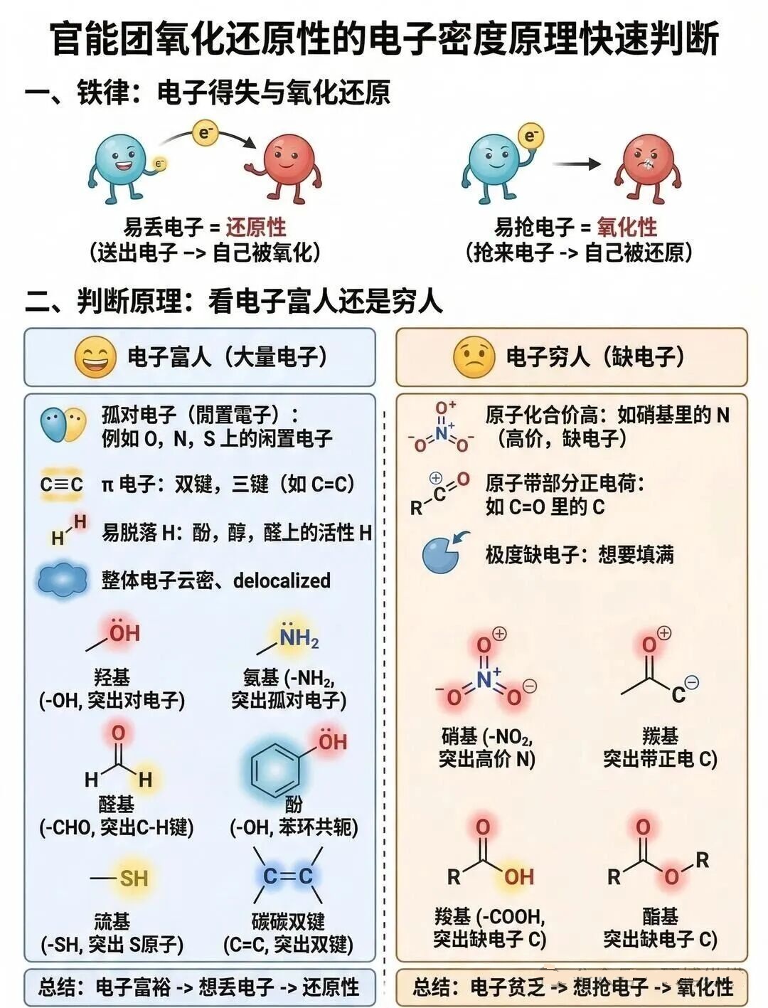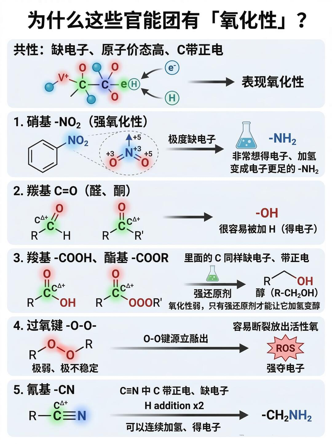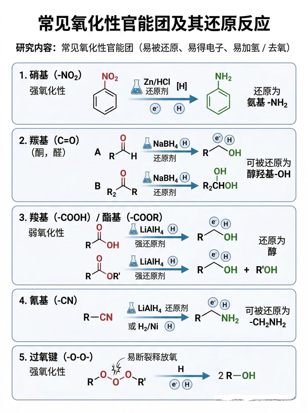 氧化性官能团(易被还原、得电子、加氢 / 去氧)