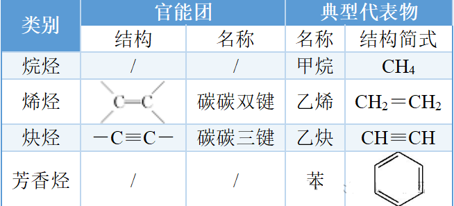 烃是仅由碳和氢两种元素组成的有机化合物。根据碳碳键的类型不同,可分为:
