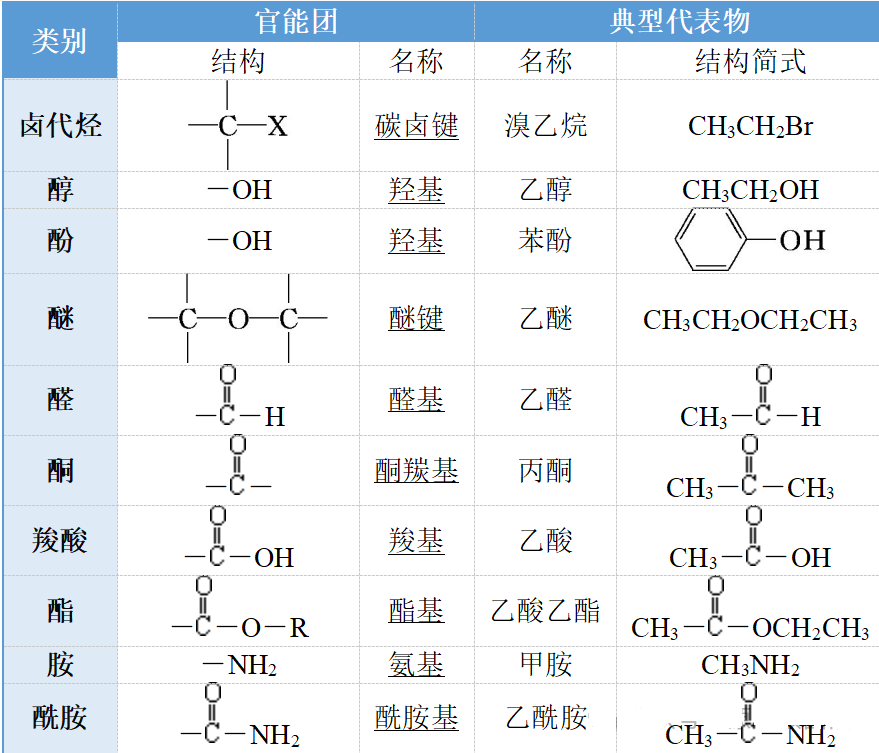 常见的官能团及其对应的化合物类别如下: