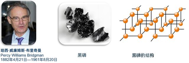 1914年,布里奇曼将剧毒的白磷放入他自己设计的超高压装置中,同时施加了200°C的温度和高达1.2万个大气压(相当于深海一万米的压力)的恐怖压力。在这样极端的物理压迫下,白磷分子的四面体结构彻底崩溃,原子被强行压实,被迫重新组合成一种极其紧密的瓦楞状层状结构。当布里奇曼打开压力舱时,奇迹再现:白磷消失了,他得到了一种外观极其类似石墨的黑色片状晶体:黑磷。