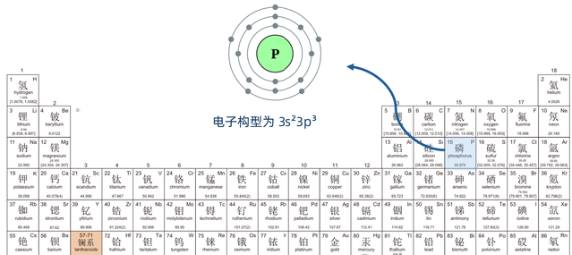 说完了磷的发现史,我们再来聊聊磷的应用。磷位于元素周期表第三周期,第五主族。磷是典型的非金属元素。磷原子最外层有5个电子(电子构型为 3s²3p³),它更倾向于获得3个电子形成-3价的阴离子(P³⁻),或者通过共用电子对形成共价化合物,以达到稳定的稀有气体电子构型。这驱使它极易与其他元素(尤其是电负性高的氧)发生反应。因此,磷在日常生活和人体中主要以化合物的形式存在,而不是单质磷。其中磷酸和磷酸盐是磷元素存在的最常见,也是最稳定的形式
