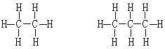 这一类型说明碳与碳之间也可以用一价自相结合成为一个碳链,例如两个或三个碳原子自相结合成键后,还剩下没有用去的价键均与氢结合,就得到C2H6,C3H8。