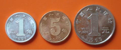 (1、2、5角,1元),三种角币材质是铜锌合金,一元硬币材质是铜镍合金。