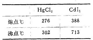 比较HgCl2与CdI2的熔、沸点:参看下表: