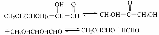 二是酮糖在碱的作用下发生醇醛缩合的逆反应: