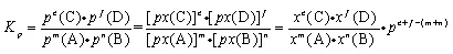 eC(g) + f D(g) ,达平衡时,气态生成物分压幂之积与气态反应物分压幂之积的比值为一个常数,称为该反应的压力平衡常数,用符号Kp表示,Kp的表达式如下: