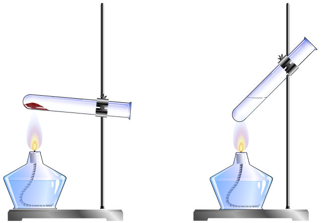 在试管中加热:加热少量固体时,可用试管直接加热。将试管口稍向下倾斜。