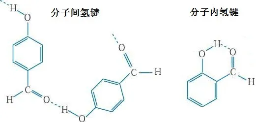 对羟基苯甲醛的氢键只能产生于分子之间,邻羟基苯甲醛的氢键可以产生在分子内部。