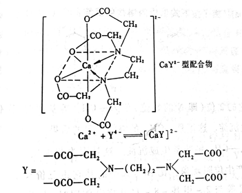 其中Cu2+离子的配位数仍旧是4,氧提供孤电子对与中心离子配位,又有负电荷可以中和中心离子的正电荷,生成中性分子的“内配盐”。当然也有形成离子的,以Ca2+为例: