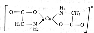氨基乙酸的酸根氧离子(H2N-CH2-COO-)与Cu2+形成如下的螯合物: