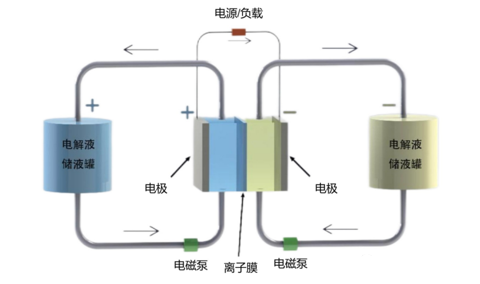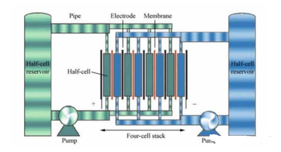 由于两边的电解质溶液几乎一致,所以离子膜没有说一定要阳离子交换膜还是阴离子交换膜,不像全钒液流电池需要阻止钒离子相互串门。