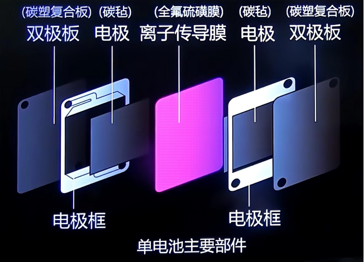 双极板的功能比较多(下图),板上的沟壑是为了导流分流(把溶液打散),这样能够让溶液充分与电极接触;电子在板上汇集,所以起到汇集电流和导电的作用;另外,上面有多个螺丝孔位,把电极和离子膜像三明治一样压在中间后,用螺丝固定,所以起到了固定和支撑电池组的作用。