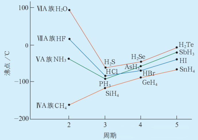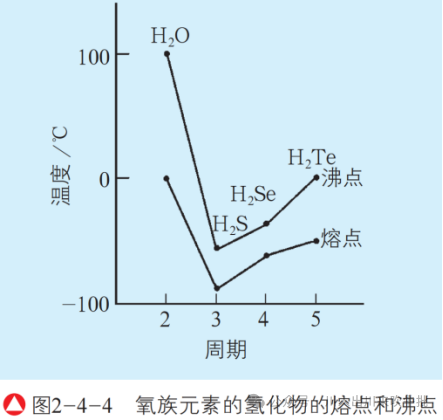 另外,在氧族元素的最简单氢化物中,常温、常压下硫化氢(H2S)、硒化氢(H2Se)、碲化氢(H2Te)都是气体,只有水以液态存在。按照一般规律,水的沸点应该低于硫化氢的沸点,但事实却相反。这是为什么?
