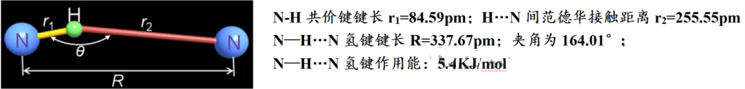 ④弱氢键(N—H…N)方向性和饱和性不明显,更加类似于普通的分子间作用力:在固态或液态氨气分子间N—H…N的N原子周围尽可能形成多的氢键以降低体系能量。晶体中,氨分子间形成的弱氢键参数如下: