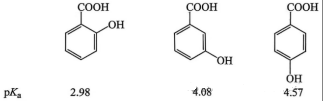 氢键只会影响物理性质吗?我们先看下列三种结构相似的酸的电离常数的负对数