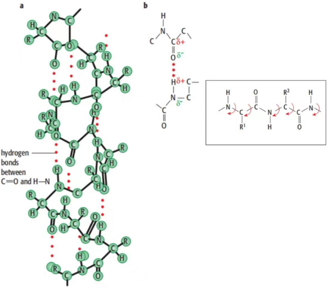 蛋白质的α螺旋结构中含有大量氢键;氢键是维系蛋白质二级结构的基础。酒精是蛋白质变性一方面是因为酒精直接与蛋白质反应;另一方面是酒精通过羟基与蛋白质中的N、O原子形成新的氢键,扰乱了蛋白质中原有的氢键,改变了蛋白质空间结构,从而让其失活。同理,羊毛织品水洗后会变形,原因类似。羊毛纤维是由蛋白质构成的,蛋白质分子中的氨基(-NH2)和碳氧双键(C=O)中的氧原子会形成氢键。羊毛在浸水和干燥的过程中,会在这些氢键处纳入水和去除水,而且其变化往往是不可逆的,从而改变了原先蛋白质的结构,即原先的氢键部位可能发生移动,由此引起羊毛织品变形。