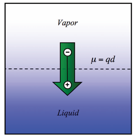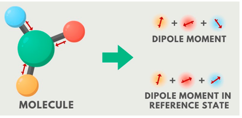 偶极矩:偶极矩是用来描述分子中正负电荷中心分离程度的物理量。对于一个由正电荷(+q)和负电荷(-q)组成的简单电偶极子,其偶极矩的定义为: