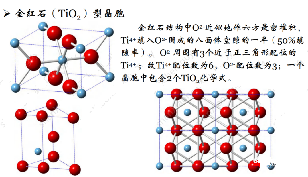 金红石(TiO2)是一种重要的半导体光电转化材料,具有独特的光学、电学和化学性质、性能稳定,能够抵抗介质的电化学腐蚀,广泛地应用于半导体、传感器、介电材料、涂料、化妆品和催化剂领域。金红石为AB2型离子晶体,是常见的离子晶型之一,许多四价金属的氧化物和二价金属的氟化物都采用金红石结构。高中《物质结构与性质》部分经常有相关习题考查其结构特征,现将金红石(TiO2)晶胞做简要介绍。
