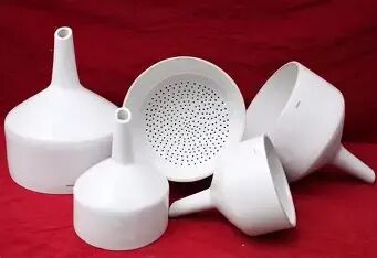 长得最特别——扁平的圆盘上全是小孔,像个筛子。它必须配合抽滤瓶和水泵使用,专门做“减压过滤”(抽滤),能快速把沉淀和溶液分开,适合收集需要干燥的晶体。