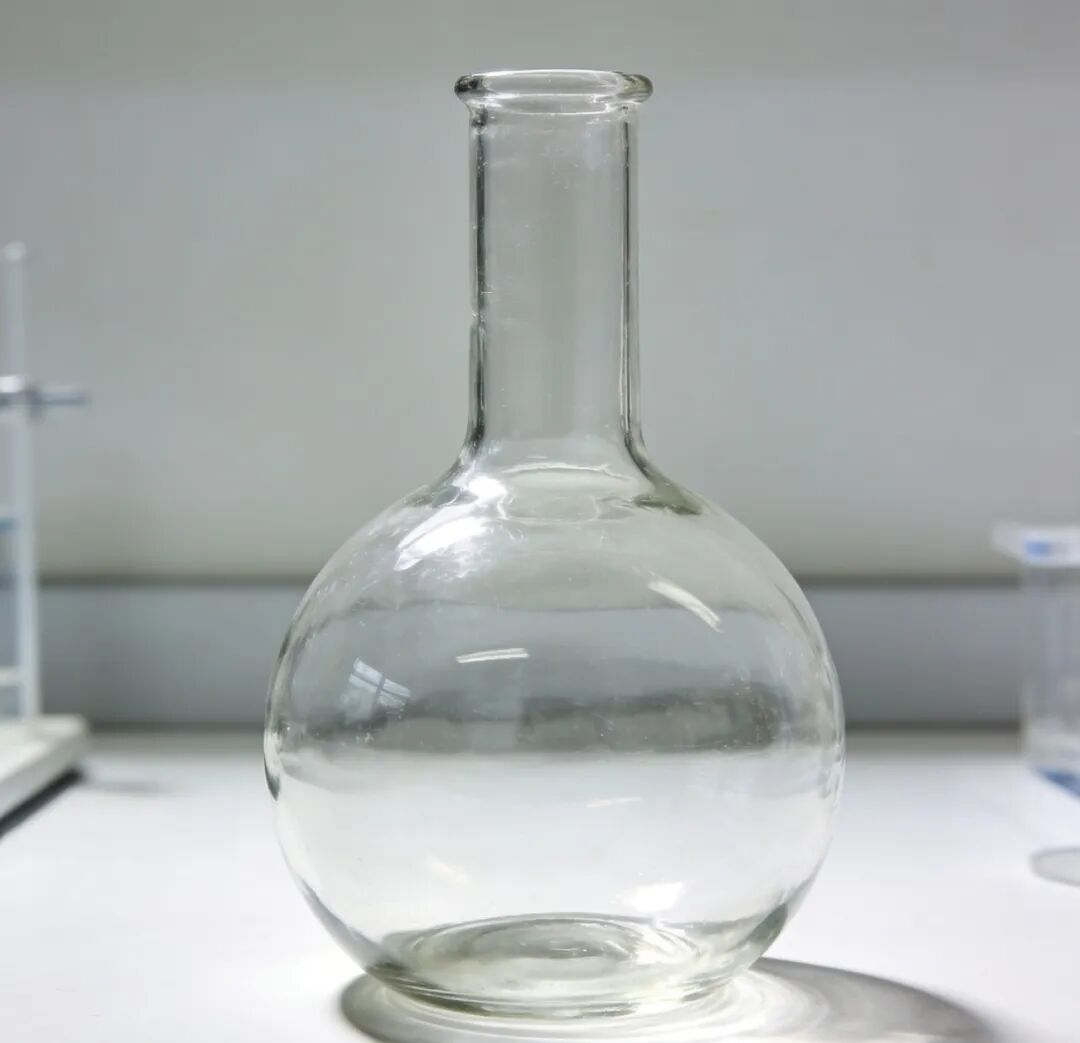 圆滚滚的肚子,细长的脖子。它是加热反应的“主力军”,受热面积大又均匀。**注意**:不能直接放在火上烧,下面要垫石棉网。而且它没有支管,所以不能用来蒸馏。