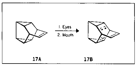 1971年,巴桂特(Paquette)教授合成有机分子(17A),这个分子令他想起木偶奇遇记中因说谎话而鼻子变长的木偶(17B),于是他把分子(17A)命名为:snoutene(snout指大鼻子)